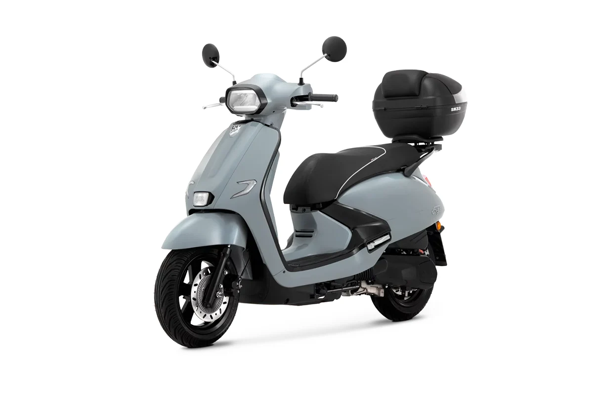 - Diseño Neo-Retro: Líneas redondeadas, faro clásico y detalles cromados que evocan la época dorada de los scooters.